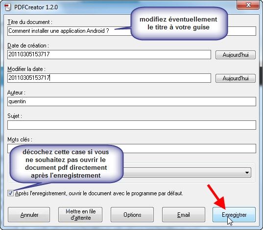 ce logiciel libre qu'est PDFCreator, très simple d'utilisation grâce à sa fonction